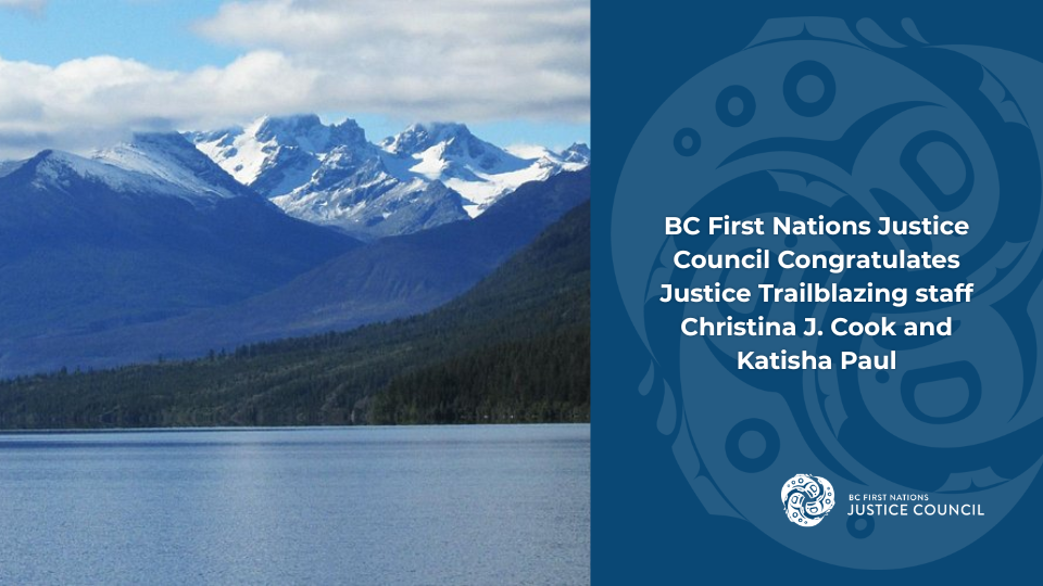 The BC First Nations Justice Council (BCFNJC) is proud to celebrate and extend our heartfelt congratulations to BCFNJC staff members Christina J. Cook (Brokenhead Ojibway Nation) and Katisha Paul (W̱ JOȽEȽP and Lil’wat).